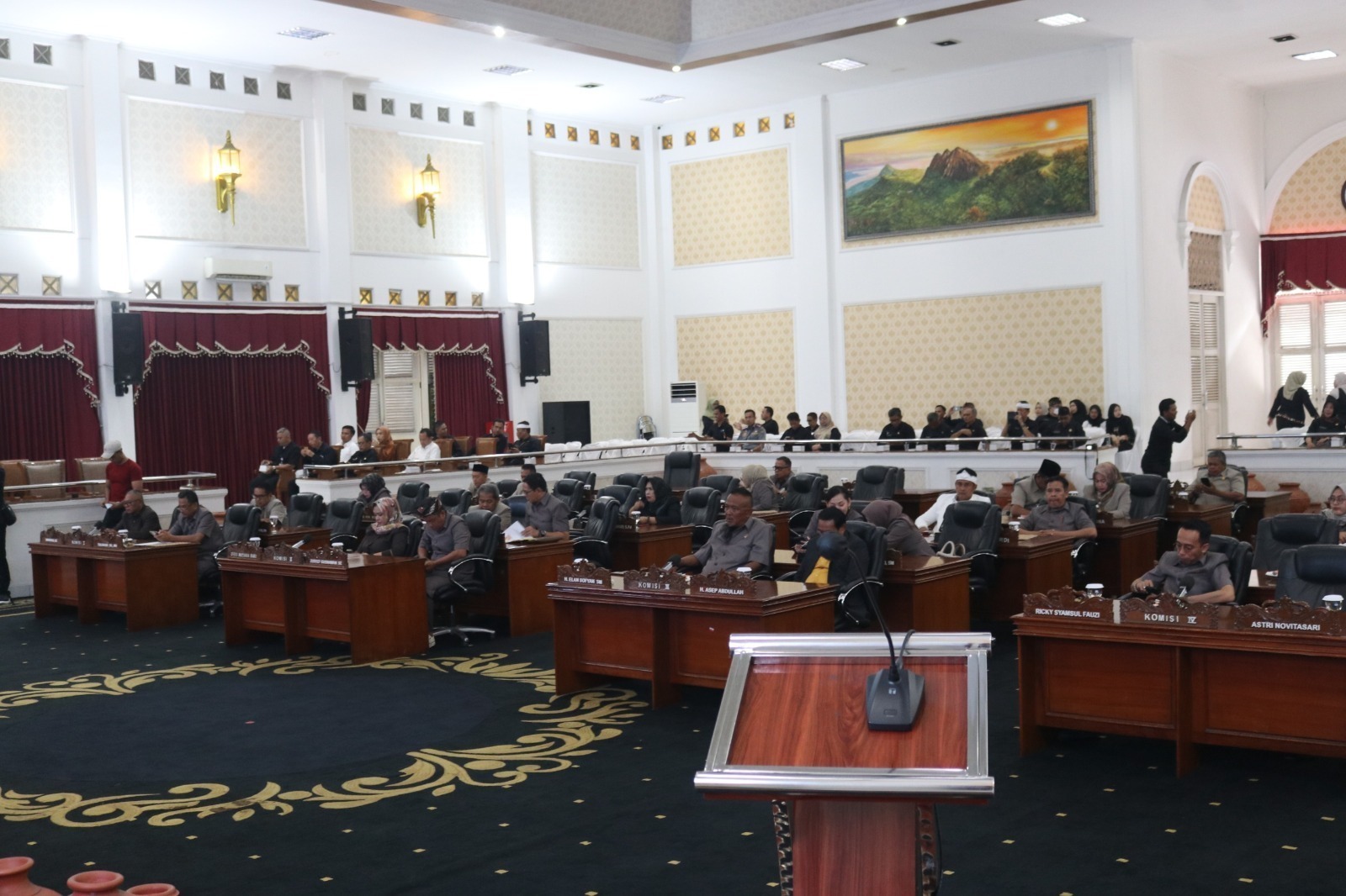 Rapat dipimpin Ketua DPRD Purwakarta, Sri Puji Utami didampingi Wakil Ketua I DPRD Dias Rukmana Praja, Wakil Ketua II DPRD Luthfi Bamala, Wakil Ketua III DPRD H. Entis Sutisna, SH.,M.M dan Sekretaris DPRD Rudi Hatono, S.AP.,M.M., dengan dihadiri 31 anggota dewan.