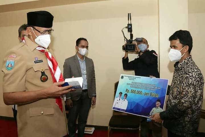 BANTEN, jurnalmedia.com – Pemerintah Provinsi Banten melalui Dinas Pendidikan dan Kebudayaan, salurkan insentif honor bagi guru dan tenaga kependidikan swasta. Penyerahan insentif honor guru dan tenaga kependidikan swasta dilakukan oleh Gubernur Banten, Wahidin Halim kepada delapan (8) orang penerima yang mewakili delapan (8) Kabupaten/Kota yang ada di Provinsi Banten di Ruang Rapat Rumah Dinas Gubernur Banten Jalan Jenderal Ahmad Yani No. 158 Kota Serang (Rabu, 7/4/2021).
