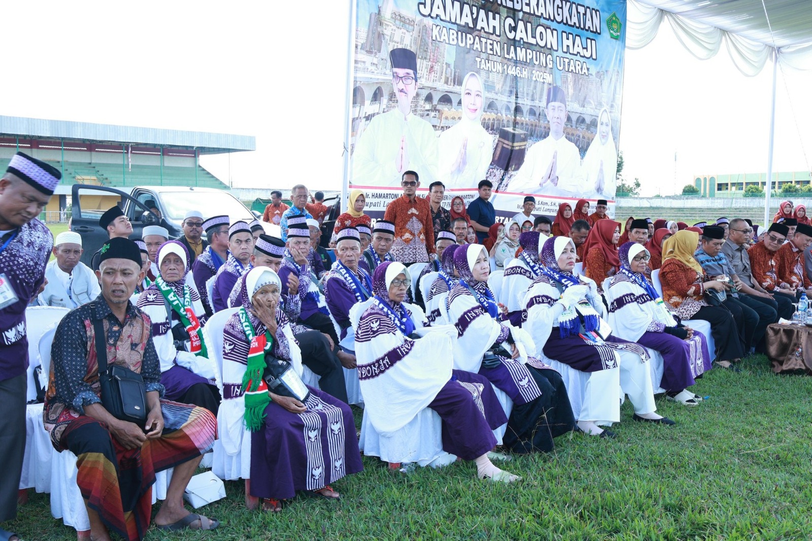 Dalam sambutannya, Bupati Lampung Utara Dr. Ir. H. Hamartoni Ahadis diwakili oleh Asisten I Bidang Pemerintahan dan Kesejahteraan Rakyat, Drs. H. Mankodri, M.M., pemkab Lampura menyampaikan rasa syukur dan bangga atas keberangkatan jemaah haji yang telah dipersiapkan dengan baik.