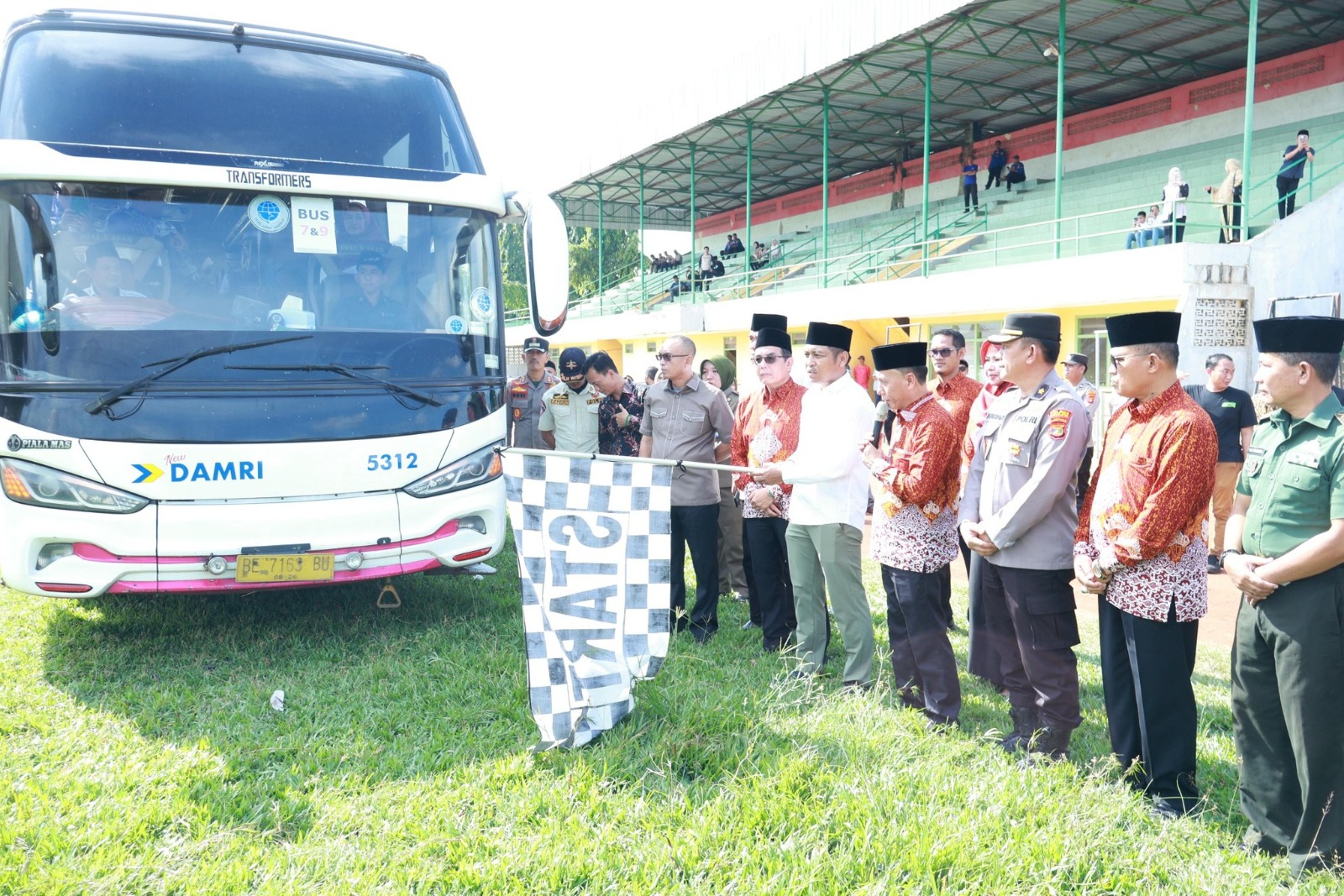 JURNAL MEDIA, LAMPUNG UTARA — Pemerintah Kabupaten Lampung Utara melepas keberangkatan jemaah haji Kloter 2 sebanyak 47 orang tahun 2025 di Lapangan Stadion Sukung Kotabumi pada Minggu, 25 Mei 2025