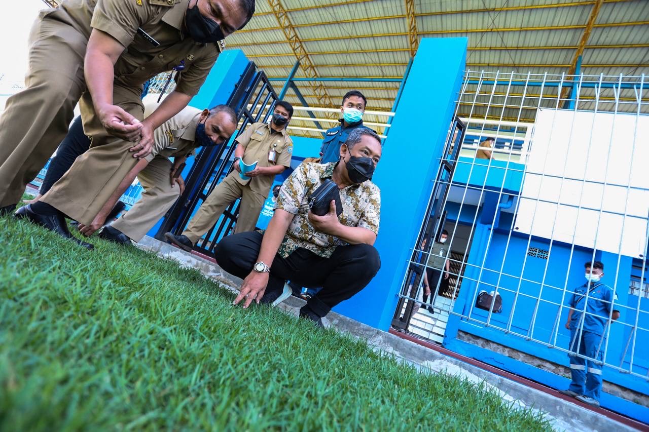 Yana juga menyempatkan diri meninjau infrastruktur lainnya seperti kondisi lampu lapangan dan kamar ganti pemain.
