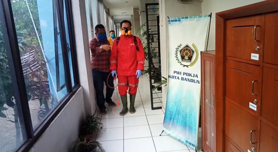 Cegah Penyebaran Virus Corona, Kantor PWI Kota Bandung Disemprot Cairan Disinfektan