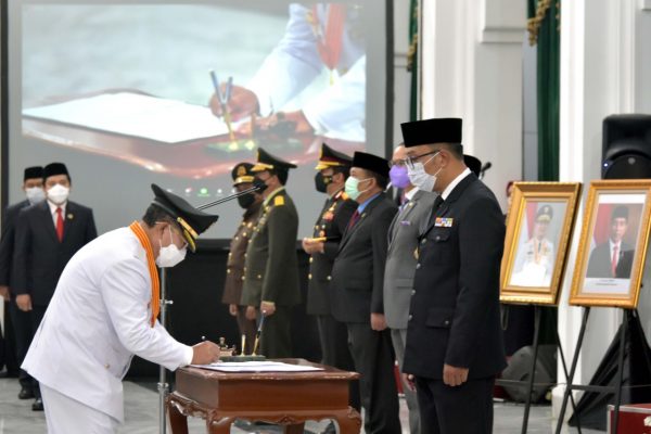 BANDUNG, jurnalmedia.com — Gubernur Jawa Barat (Jabar) Ridwan Kamil melantik Herman Suherman dan TB Mulyana Syahrudin sebagai Bupati dan Wakil
